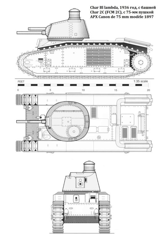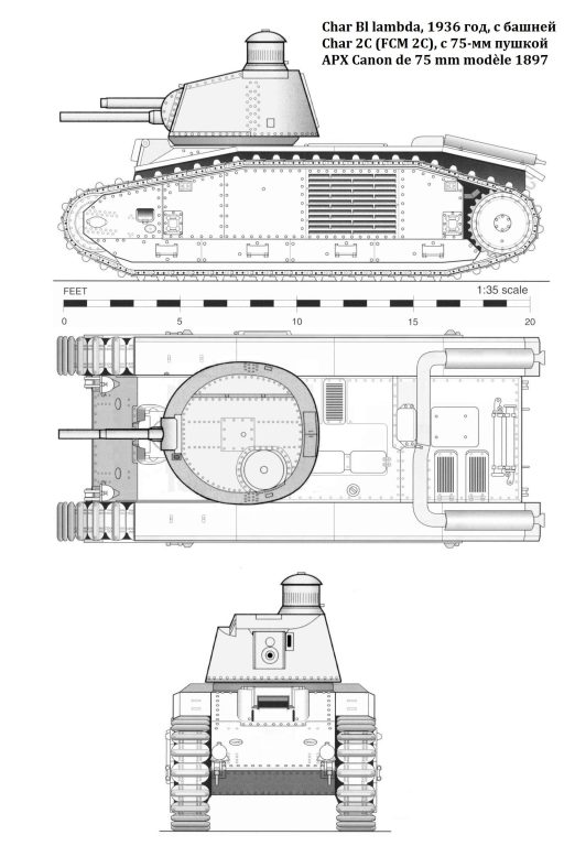 Char 2C, напротив, предлагал совершенно иную философию. Трёхместная башня с 75-мм пушкой и двумя пулемётами обеспечивала разделение обязанностей и высокую боевую эффективность. Но цена такого комфорта была непомерной: масса 75 тонн, удельное давление на грунт, близкое к критическому, чудовищная стоимость и необходимость специальной инфраструктуры для транспортировки. Машина оказалась фактически небоеспособной в условиях манёвренной войны.