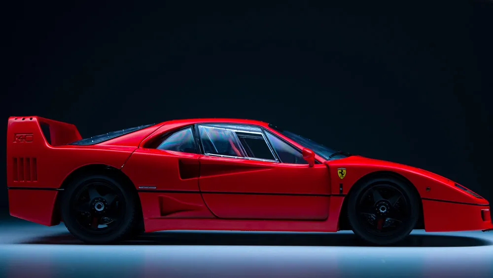 Этот автомобиль задал новые стандарты производительности, став первым серийным автомобилем, преодолевшим отметку в 200 миль в час (324 км/ч). F40 была воплощением гоночных технологий на дорогах общего пользования — минималистичный интерьер, карбоновый кузов, твин-турбо V8 и абсолютная ориентация на производительность.