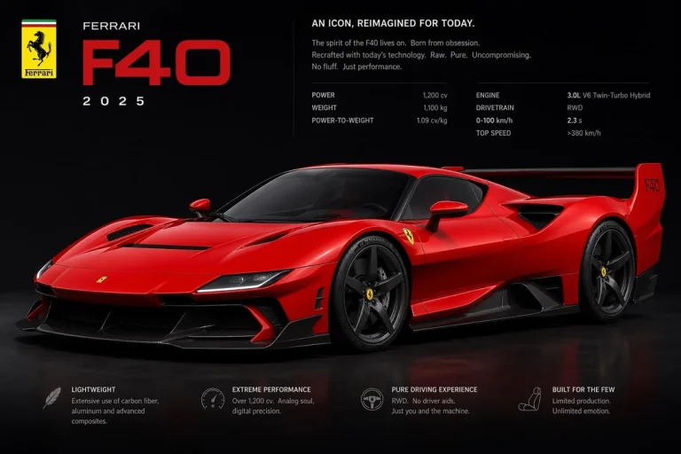 Современный концепт F40 2025 — это технически совершенный гиперкар, который превосходит оригинал по всем параметрам. Но теряет ли он при этом душу? Оригинальная F40 была грубой, шумной, неудобной — и именно это делало её особенной. Она требовала от пилота мастерства и не прощала ошибок.