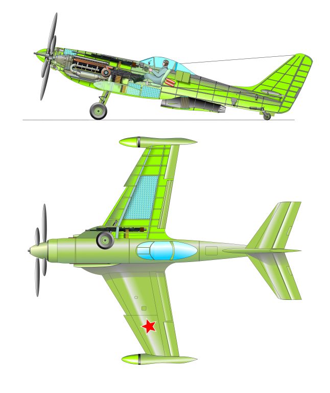 — Обороты выросли вдвое, — продолжил он, — снижаем дополнительным редуктором от М-82. Мощность реализуем шестилопастным винтом. Новый делать нет времени — поставим два стандартных трёхлопастных, последовательно, на одном валу.
