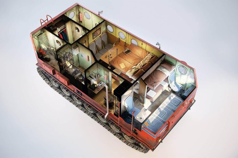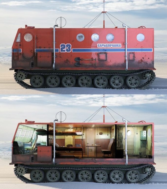 Тысячи километров без дорог, постоянный ветер, экстремальные морозы, трещины во льду — всё это превращало любую экспедицию в изолированную систему. Обычные гусеничные тягачи могли тянуть грузы, но не решали главного: людям нужно было где-то жить, греться, работать и обслуживать технику.