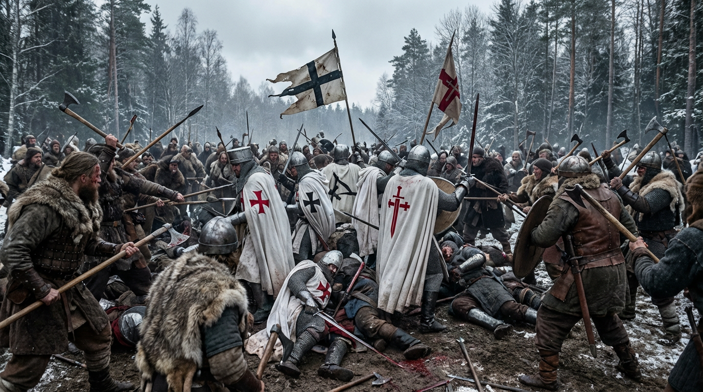 В те годы немецкие клинки были заняты иным. Рыцари, воины и наёмники Германии бились за Вильгельма Голландского в Рейнской области. Мало кто жаждал ступить в ледяные топи Балтики, где прямо по ту сторону реки дышали язычники. Конечно, некоторые всё же отправлялись на восток, особенно из северо-восточных владений вроде Бранденбурга, Лужицы и Ростока, но Северные крестовые походы уже не собирали того моря железа, что бушевало в 1230-х и 1240-х годах. Пламя креста тлело, но не гасло.