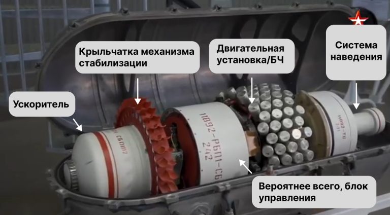 Информации об изделии немного. Например, достоверно неизвестно о типе системы наведения. Самое интересное из известных решений — это двигательная боевая часть. Да, это не ошибка. В середине устройства размещались 96 твердотопливных зарядов, чьи корпуса являлись фактически поражающими элементами.
