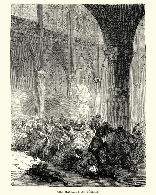 Первый крупный удар приходится на город Безье. Осада длится недолго, но её последствия становятся символом всей кампании. После взятия города начинается резня, в которой погибают не только катары, но и католики.