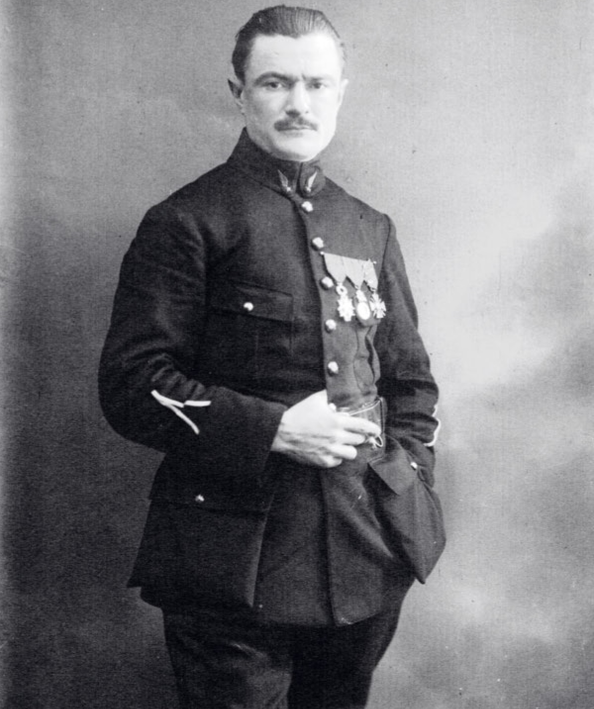Жюль Ведрин, сфотографированный в 1916 году во время службы в эскадрилье N 3, где отличился, выполняя специальные задания по высадке шпионов и диверсантов в тылу немецких войск
