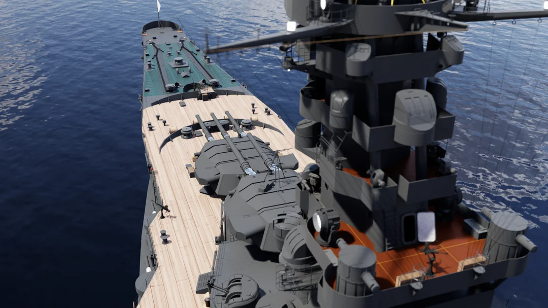 Результат? Башни, словно вырезанные из камня древнего храма, но оснащённые 396-мм орудиями — мощнее, чем у «Конго», и быстрее, чем у «Ямато». Они стали визитной карточкой класса.
