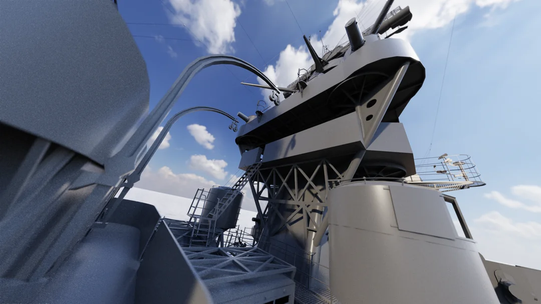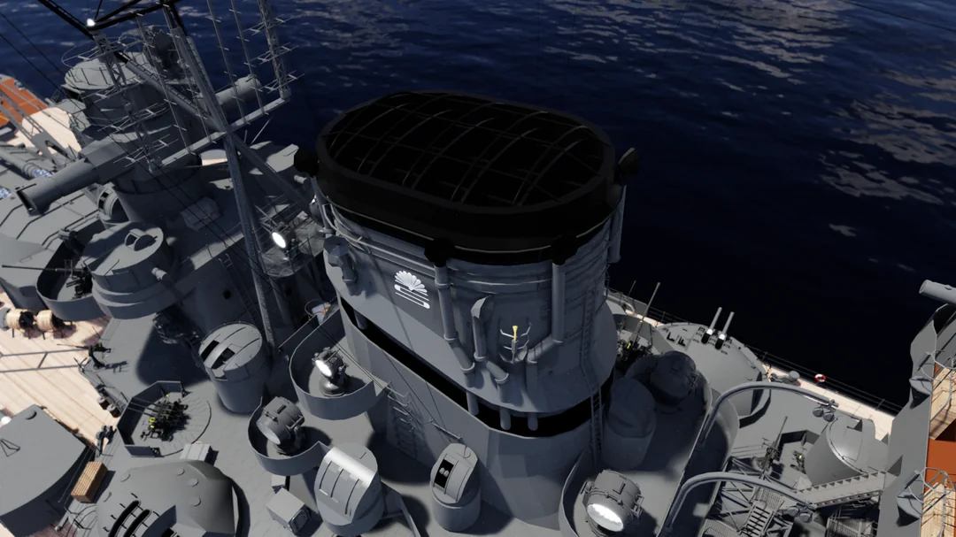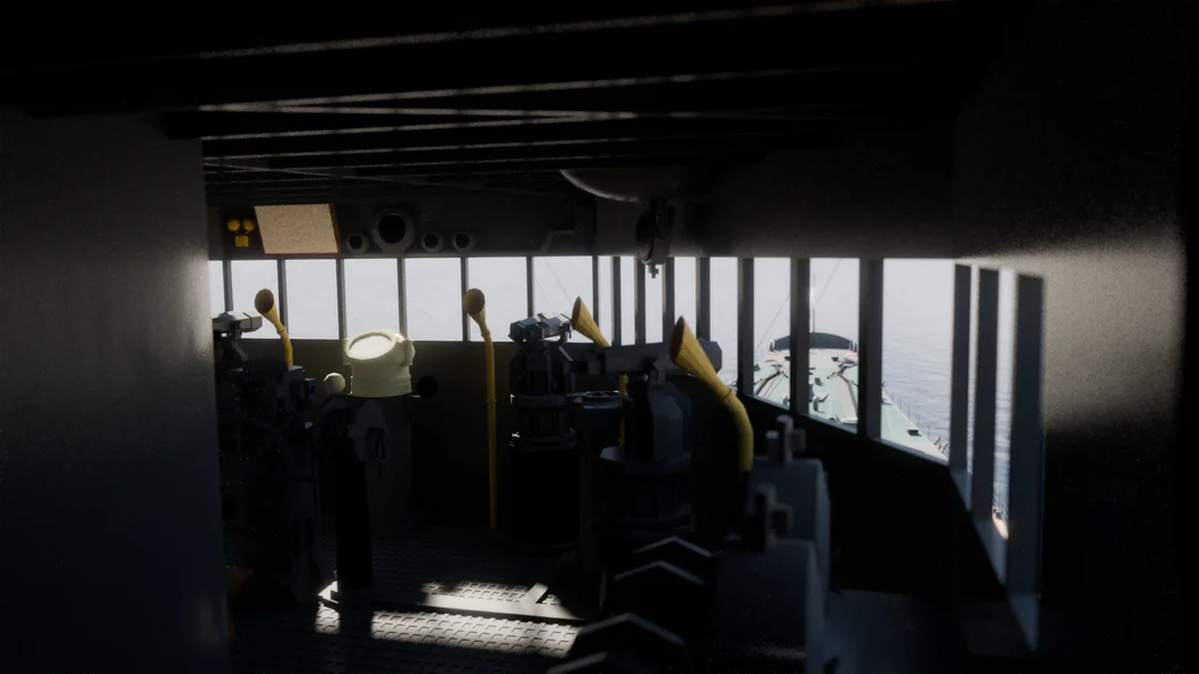 - Детализированный мостик с компасной рубкой — полностью смоделированный, с ручными рычагами управления.