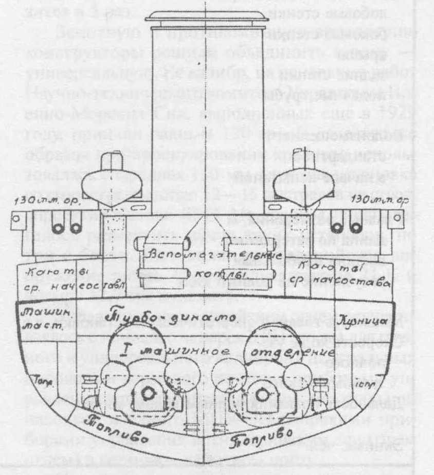 В этом нелегком выборе единственными «советчиками» являются опыт проектирования и эксплуатации современных кораблей. Этот опыт в ряде случаев способен подсказать правильное решение, но в СССР, на долгие годы прекратившем строить и разрабатывать тяжелые артиллерийские корабли, этого опыта не было, да и быть не могло. Страна, по сути, осваивала еще дореволюционные «заделы» царского кораблестроения, создававшиеся в промежутке между Русско-японской и Первой мировой войнами. В результате проектировщики большого крейсера попытались возместить нехватку опыта, безусловно, остроумными, но вряд ли способными выдержать проверку практикой решениями.