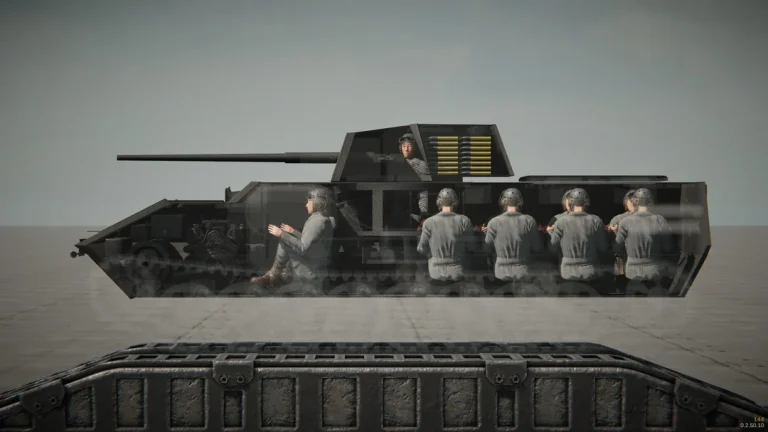 Концептуально машина опережала своё время на десятилетие. Инженеры отказались от привычной для немецкой школы компоновки с задним расположением двигателя, выбрав схему, которая позже станет стандартом для послевоенных БМП. Силовой агрегат разместился в переднем отделении корпуса, что позволило вынести трансмиссию и ведущие колёса в зону максимальной защищённости. Боевое отделение заняло среднюю часть машины, а за ним расположился вместительный десантный отсек с кормовой рампой. Такой подход обеспечил безопасную и быструю высадку пехоты под прикрытием брони, а также дал возможность солдатам вести огонь через амбразуры до момента открытия люков.
