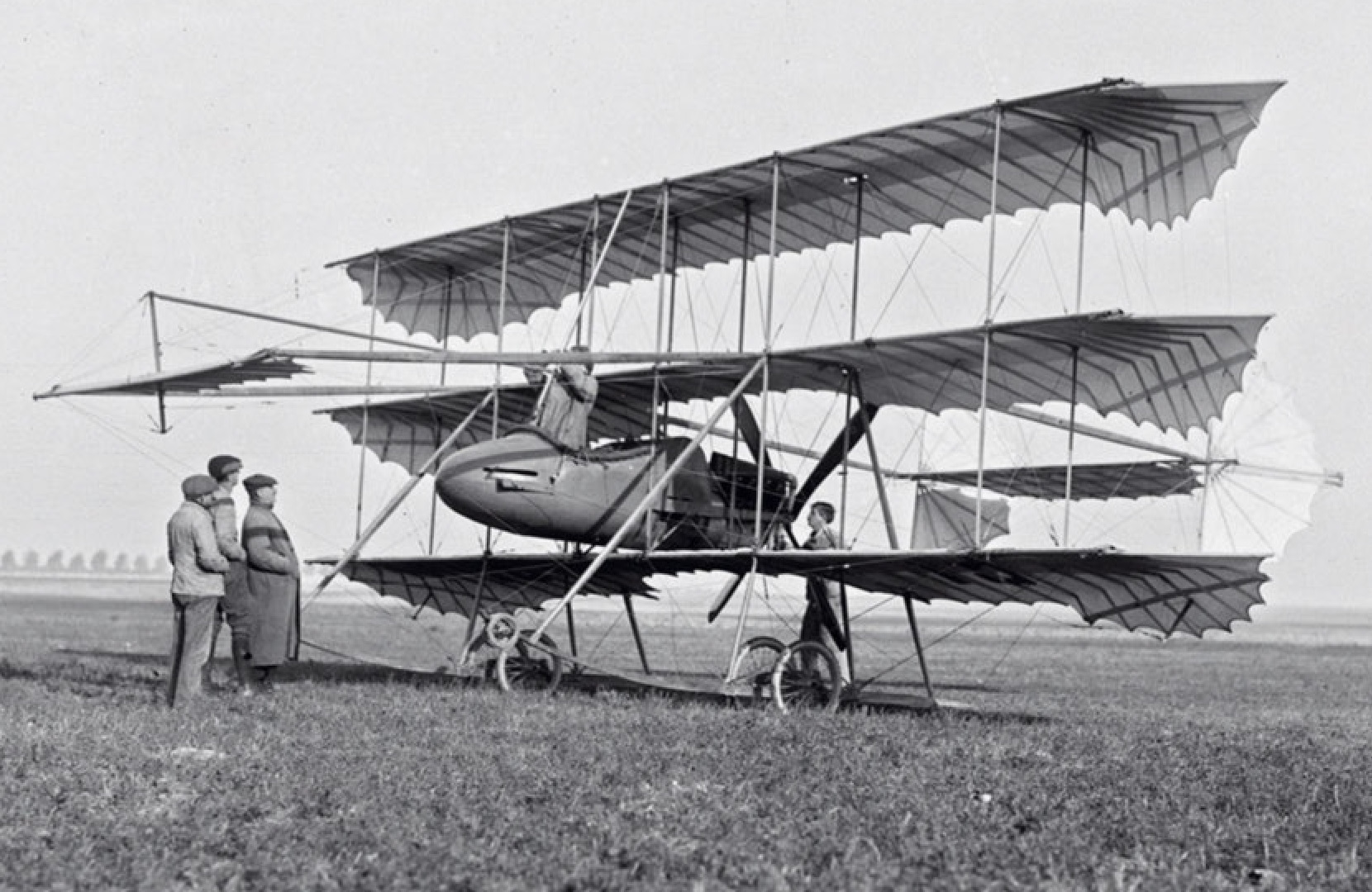 триплан Полана и Фабра, представленный на конкурс военной авиации 1911 года. Снимок из коллекции агентство Meurisse