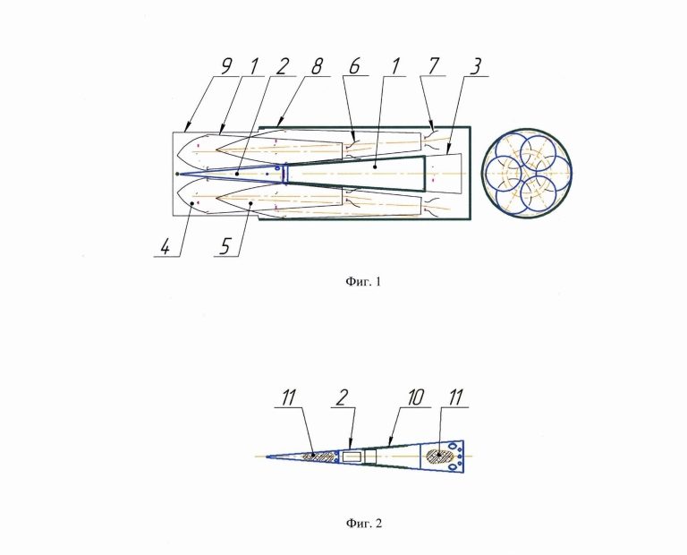 Ключевая особенность запатентованной разработки заключается в отказе от традиционных подходов к разгону в плотных слоях атмосферы. Конструкция предусматривает двухступенчатую схему с отделяемой головной частью, при этом все элементы ракеты выполнены в едином аэродинамическом контуре. Такое решение направлено на минимизацию аэродинамического сопротивления, что особенно критично при преодолении звукового барьера и выходе на гиперзвуковые скорости.