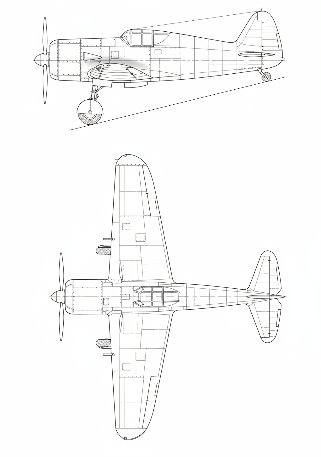 Также рассматривалась смешанная конструкция: передняя часть – ферма, задняя (за кабиной) – монокок – по типу будущего И-200 (МиГ-1/3). Причём ферменная часть закрывалась уже дюралевыми крышками на замках ДЗУС. Эти варианты привлекали простотой доступа к системам и узлам, размещённым в фюзеляже, а также логичным сопряжением лонжеронов фермы с подмоторной рамой. Но Кочеригин уже понимал, что в будущей войне дюраль и хромансиль будут в дефиците. Впрочем, нехватка в этих материалах уже ощущалась. Поэтому металл было решено использовать минимально. В результате был выбран «фанерный» фюзеляж-монокок.