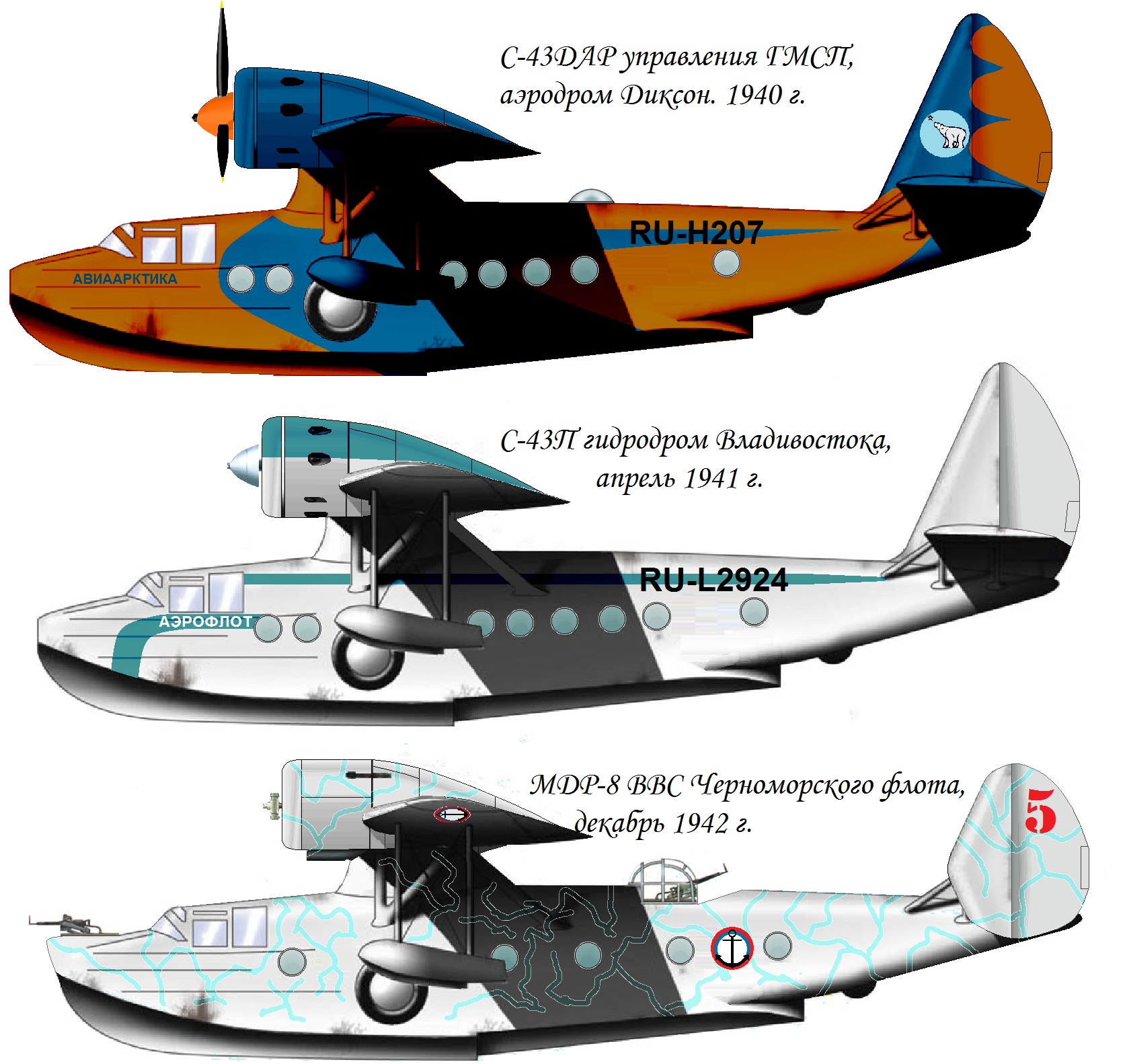 Несмотря на то что С-41 устраивал заказчиков, его производство было прервано из-за того, что в качестве новой машины приняли S-43. Эти самолеты предназначались как для Полярной авиации Главсевморпути, так и для Аэрофлота. В основном они должны были заменить надежные, но давно устаревшие летающие лодки Дорнье «Валь», спроектированные в Германии и строившиеся итальянскими заводами, и дополнить немногочисленный парк ГВФ в Сибири и на Дальнем Востоке. Самолеты решили строить по типу S-43W, который оснащался моторами Pratt Whitney GR-1820-52, с той лишь разницей, что на русскую машину установили те же лицензионные Райты, которые у нас обозначались как М-25. Кроме того, провели работу по увеличению дальности полета, за счет установки дополнительных баков.