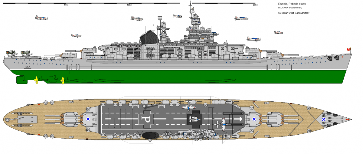 Таким образом, требовался корабль, способный действовать совместно с эскадрой, обеспечивающий ее авиационное прикрытие (истребители). Поначалу таким виделся гибрид линкора и авианосца. Проекты кораблей такого типа с 1935 года разрабатывались в ЦКБС-1. При водоизмещении 29 800 т, мощности машин 210 000 л. с., скорости 35–39 уз, вооружении: 9 305-мм АУ, 16 130-мм АУ, 18 45-мм АУ и авиагруппе в 60 машин, корабль имел 200-мм бортовую и 125-мм палубную броню. Данные явно завышенные, особенно по скорости и защите. Довольно быстро стало ясно, что советская судостроительная промышленность не в состоянии построить корабль столь сложной конструкции, кроме того, появились сомнения в самой идее гибридного корабля.