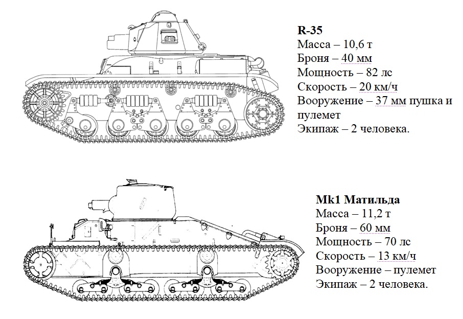 Классическими представителями пехотных танков периода тридцатых годов прошлого века являются французский R35 и британский Mk1 Матильда.