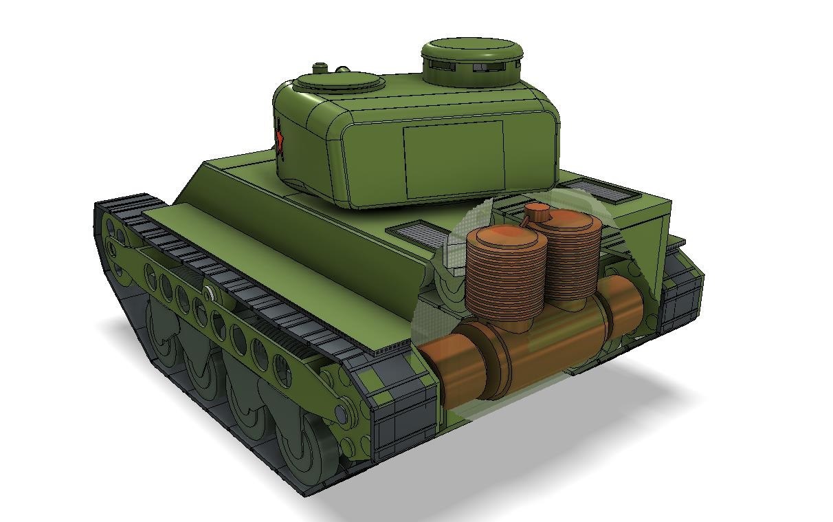 Ключевой узел в проектируемом танке – двигатель. На примере угольно-парового Т-35 совершенно понятно, что вариант с паровым двигателем не годится. Более того, в условиях СССР 30-х годов, крайне нежелательно использование бензинового или дизельного двигателя, так как такое решение не вписывается в концепцию массового бюджетного танка. Поэтому –
