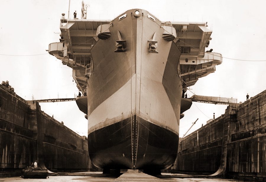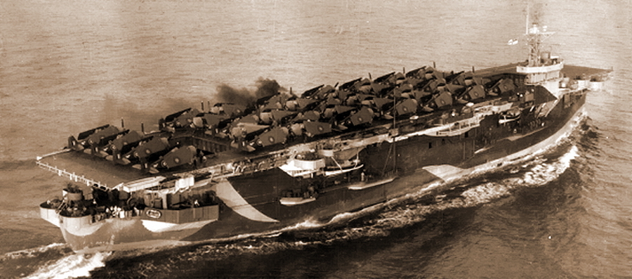 «Тэйн» выходит в море с палубой, заставленной «Хеллкэтами». Октябрь 1944 года — Последний авианосец немецких подлодок