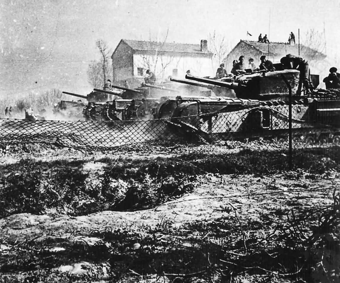 Первый звоночек прозвучал в 1943 году, когда была создана конверсия Churchill NA 75. Под этим обозначением скрывалась адаптация 75-мм орудия M3 для установки в башню Churchill (преимущественно Churchill IV). В том же году случились некоторые интересные события, связанные с более ранними орудиями. Поскольку английские военные продолжали считать, что по пехоте можно пулять болванками, осколочно-фугасными снарядами озаботились в других странах. В СССР эксперименты по установке осколочных снарядов от 40-мм зенитки Bofors в гильзу 2-фунтовой танковой пушки остались опытами, а вот австралийцы это сделали серийными. Что же касается 57-мм осколочно-фугасных снарядов, то их делали американцы для противотанковых пушек M1, местной версии OQF 6-pdr Mk.IV. От них далее эти снаряды достались и советским танкистам. В 1944 году английские «жирафы» в фуражках признали очевидное, ОФ-боеприпасы калибра 40 и 57 мм стали получать броневики и танки.